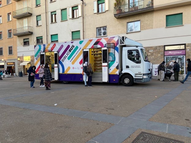 Historically, Bibliobus service was conceived by BiblioteCaNova Isolottoin 1995 and born from the “stellar distribution” project of the book started in 1992 by the Isolotto Library with the collaboration of the Department of Adult Education of the University of Florence.